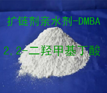 2,2-二羥甲基丁酸,DMBA被視為水性聚氨酯用新一代綠色環保型擴鏈劑和內乳化劑,生產水性聚氨酯膠黏劑,無需使用有機溶劑,有機殘留物為零.不存在使用DMPA熔點高、溶解慢、反應時間長、能耗高、產品性能差、需要加入有機溶劑、溶劑殘留量大等問題。還可用于水性環氧樹脂、聚酯等膠黏劑的制造.目前水性聚氨酯、水性樹脂、水性膠粘劑、水性涂料等水性產品多用途改性助劑(親水擴鏈劑),作為單體,改性過程中,二羥甲基丁酸(DMBA)無需添加任何有機溶劑(以水代替)